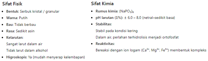 Sifat-sifat Sodium Hexametaphosphate ( SHMP ):